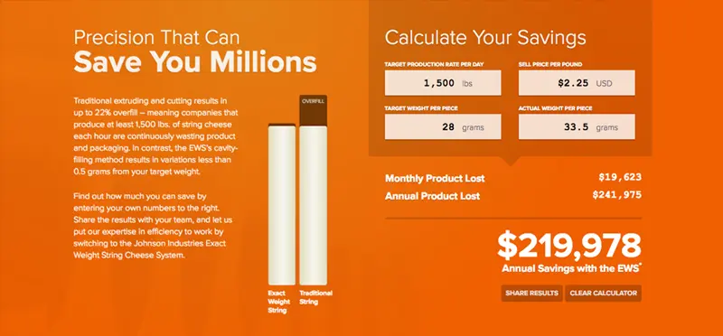 A cheese equipment manufacturer's new string cheese machine revolutionized accuracy in sizing. We helped them illustrate the cost savings.
