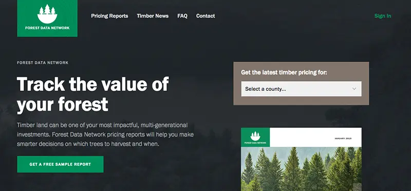With a new data product for those buying and selling timber, FDN wanted to showcase an example pricing report and gather important lead information.