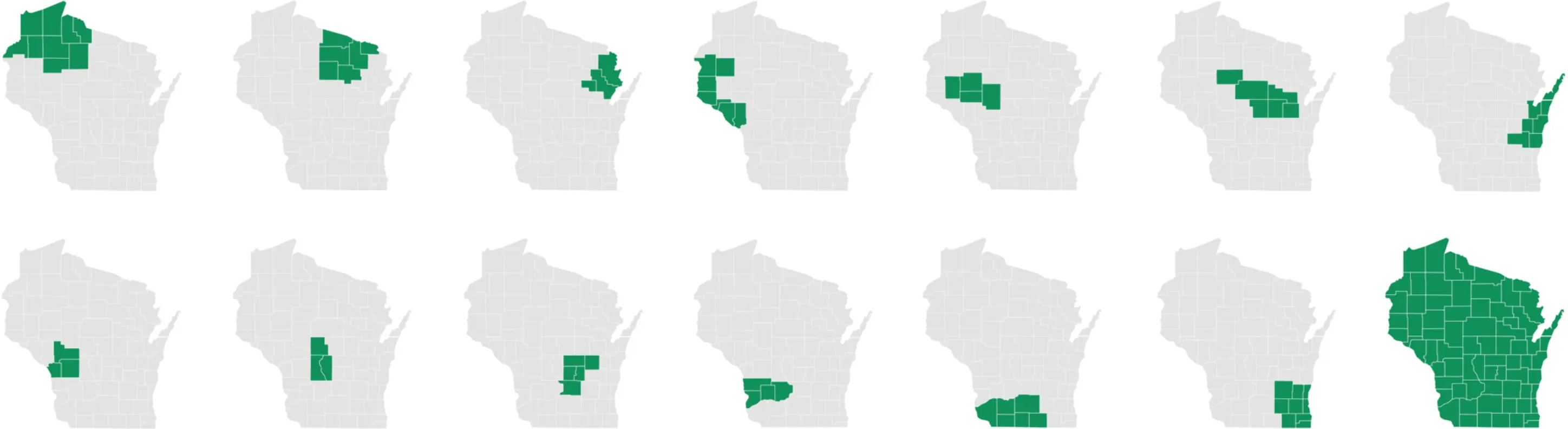 Forest Data Network sells timber pricing reports for various regions of the Midwest – with each region composed of group of counties. Rather than asking the client to manage dozens of map images, we added a unique ID to each county polygon in an SVG image of the state. Then we paired those IDs with county categories in Craft CMS.